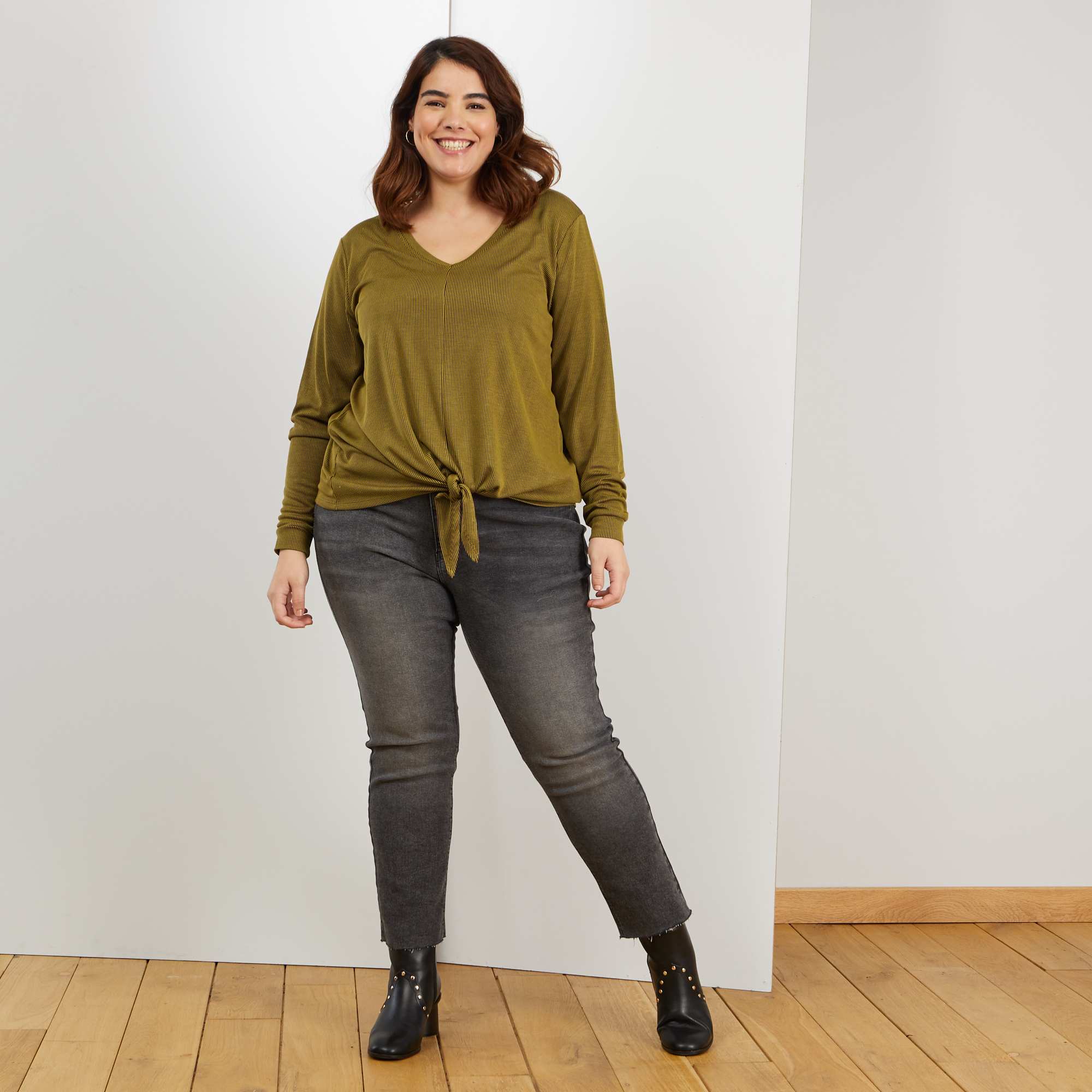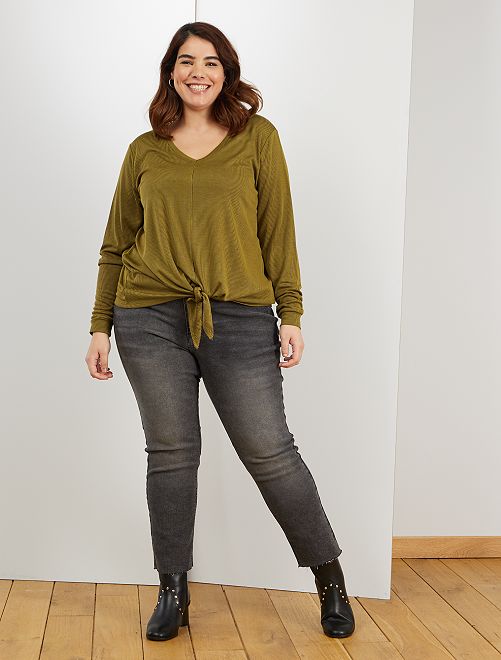 - Verstelbare taille met elastiek en knoop aan de binnenkant