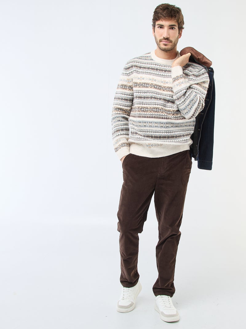 Regular fit chino van ribfluweel - Bruin