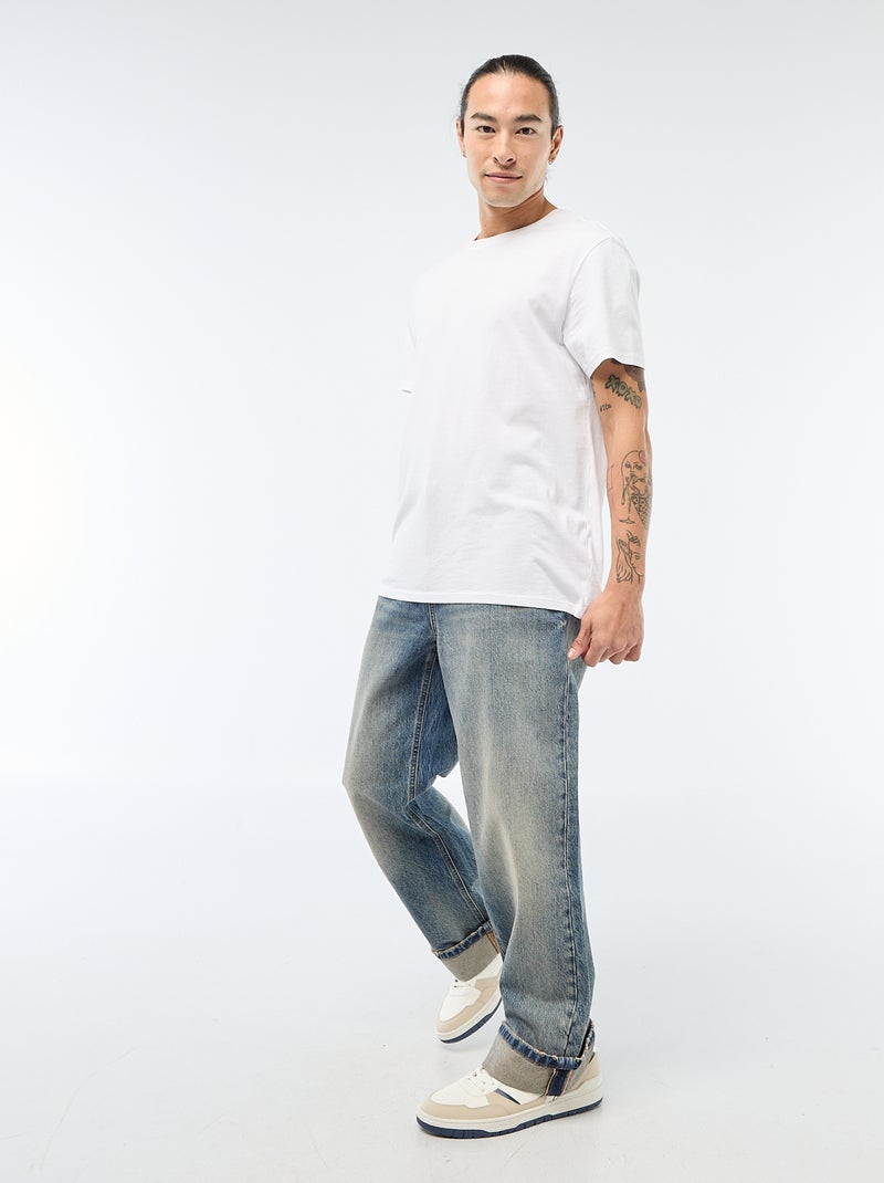 Deze jeans onderscheidt zich van de rest dankzij de omslag. Je zult het geweldig vinden om hem te combineren met sneakers of hoge boots.