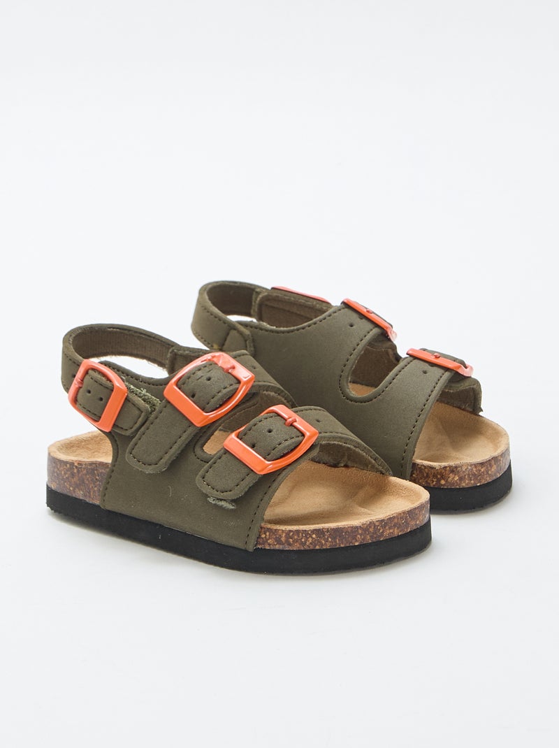 Sandalen met dubbele bandjes en contrasterende gespen - Kaki
