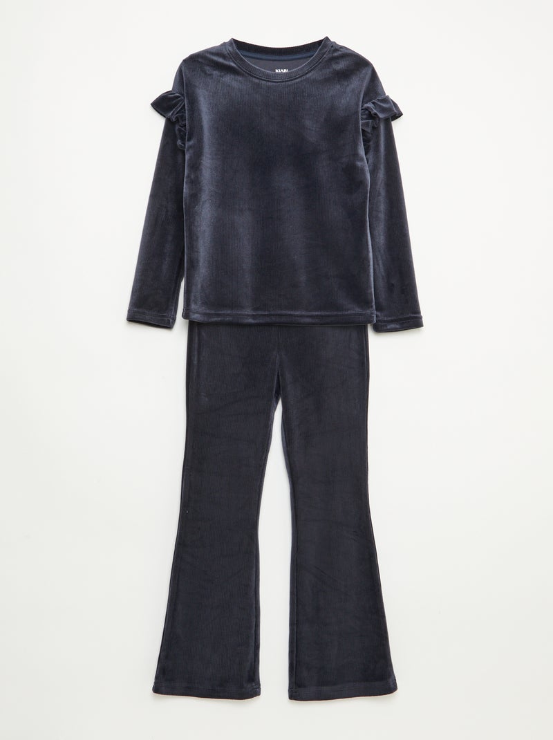 Set met T-shirt + fluwelen broek - 2-delig - Zwart