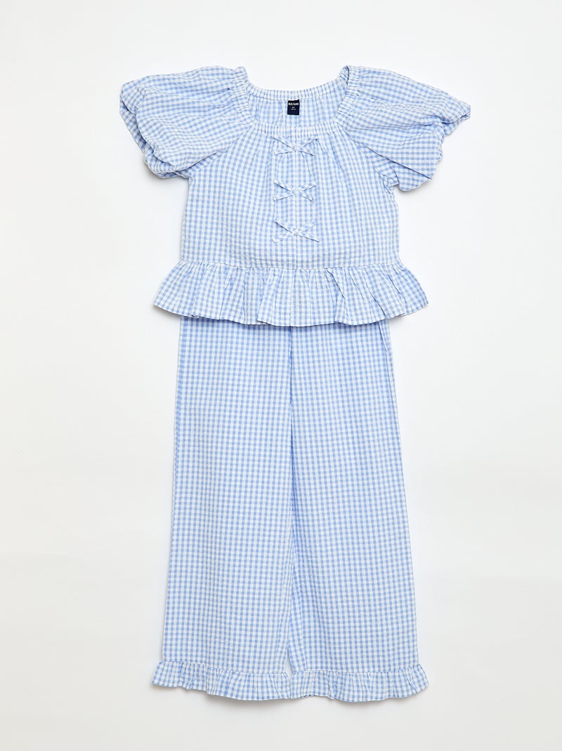 Set top + broek met katoenen details - Blauw