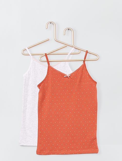 Set van 2 mouwloze tops van stretchkatoen                                                     ORANJE