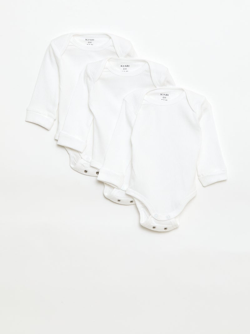 Set van 3 meegroeiende rompers met US-hals en lange mouwen - Wit