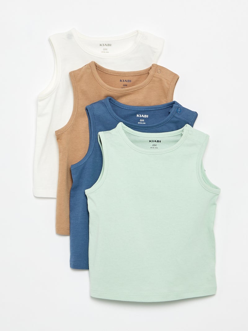 Een set van 4 basic hemdjes om je baby de hele zomer aan te kleden.