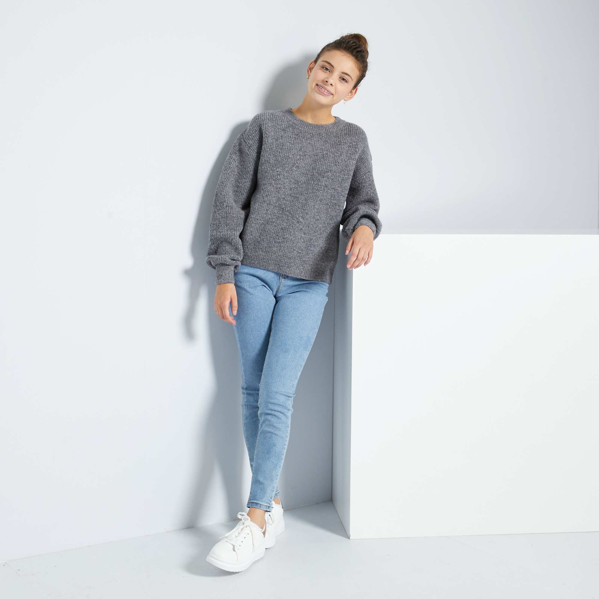 Skinny jeans met een hoge taille                                                                 dubbele steen