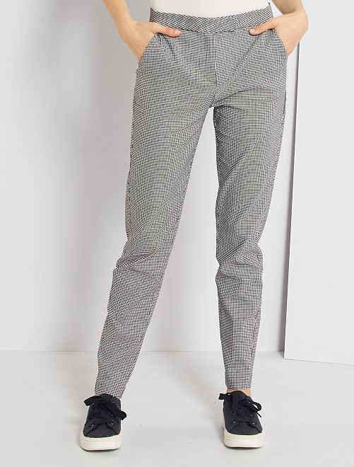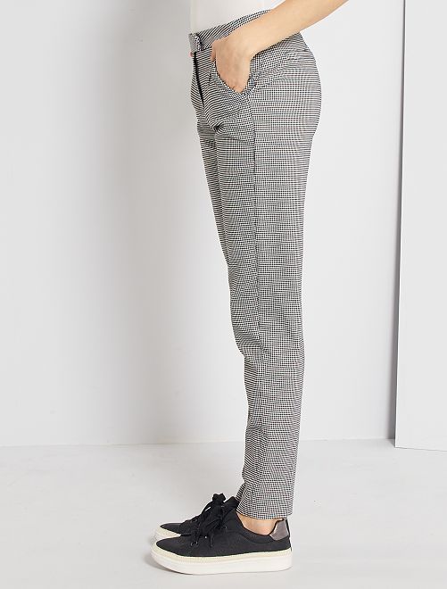Slim-fit broek met pied-de-puce-print