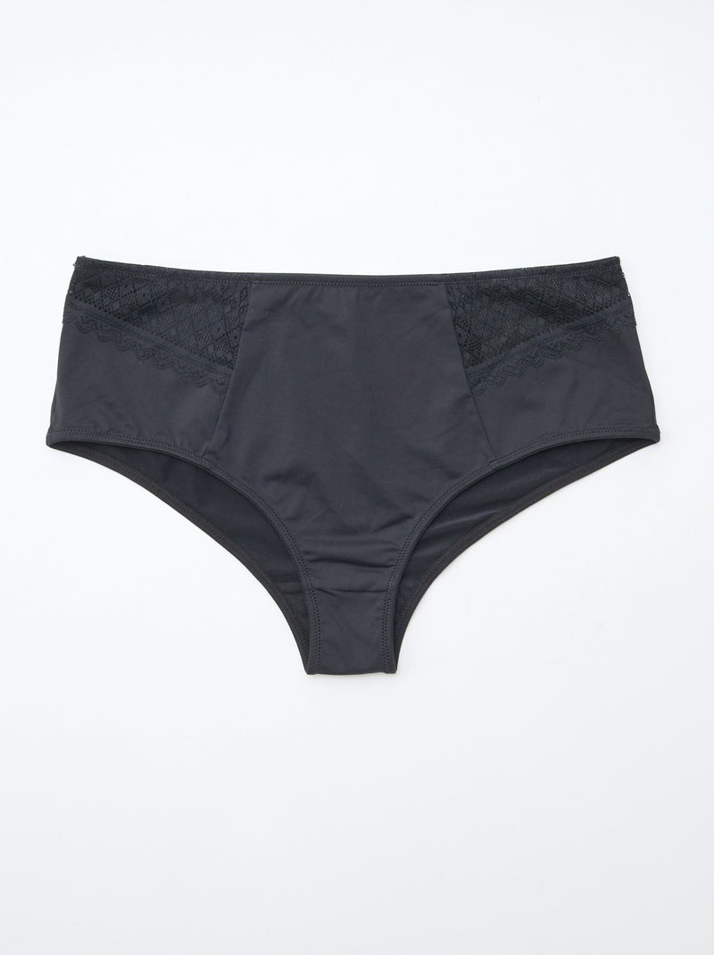 Een slip van satijnachtige stof met kanten details voor een zacht gevoel en een verfijnde touch.