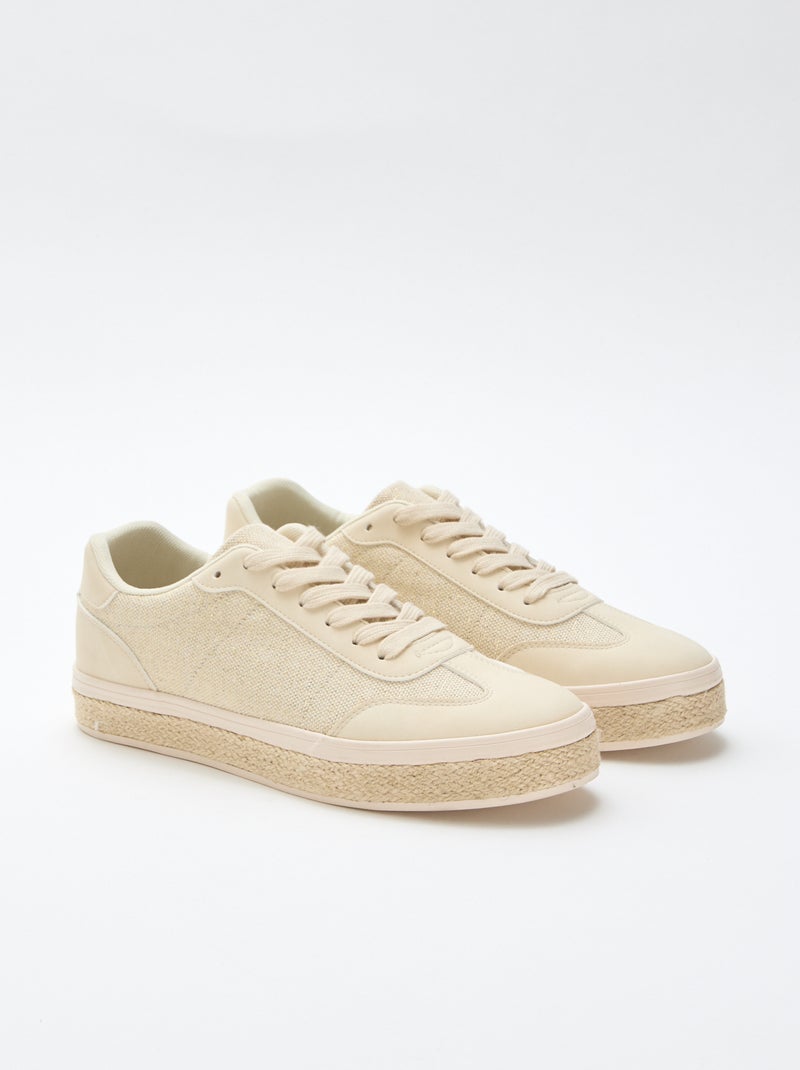 Sneakers van verschillende materialen en espadrillezool - Geel