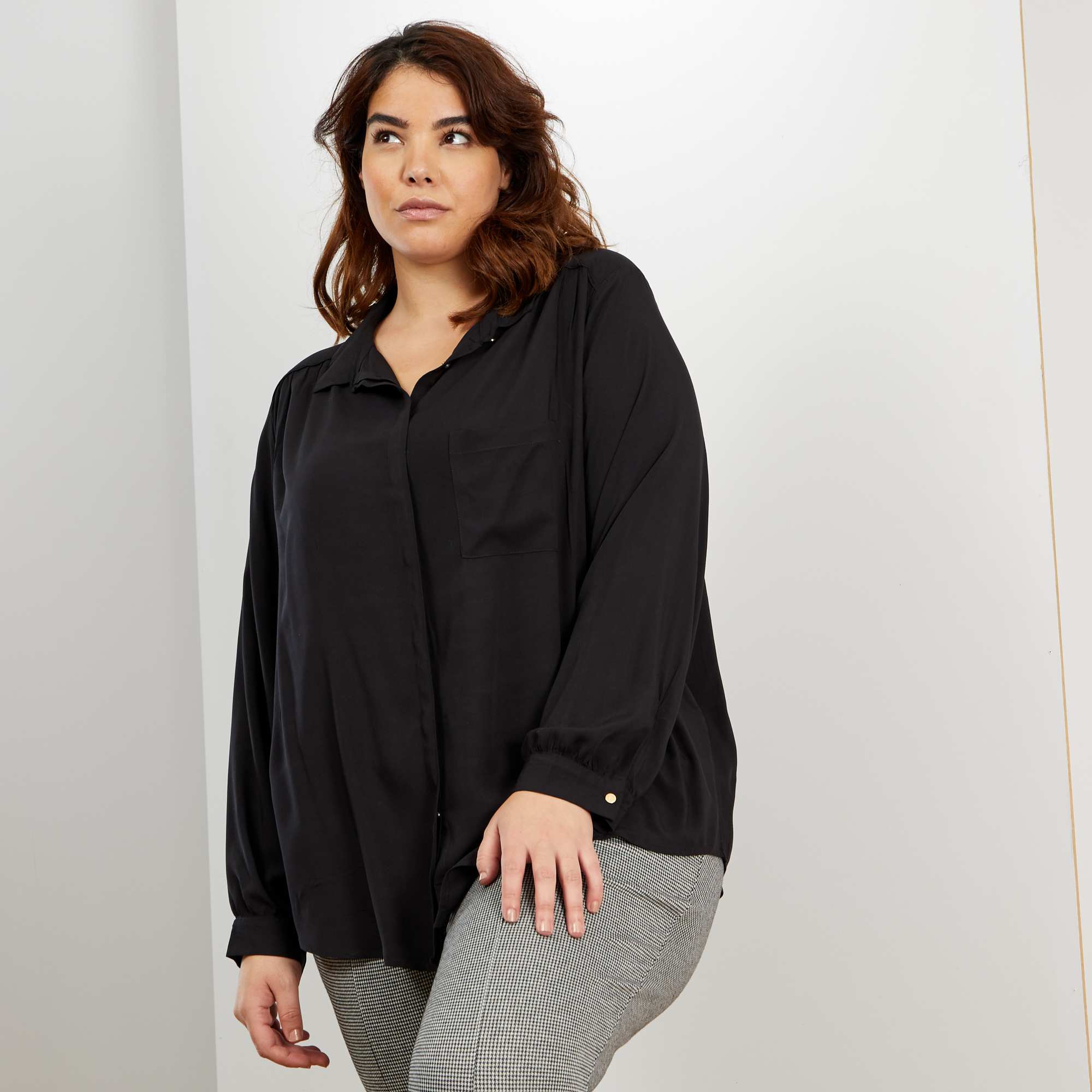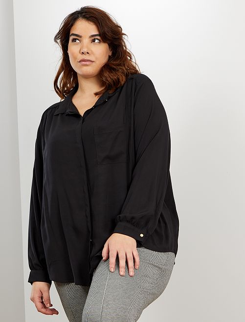 Soepele blouse met zak - zwart