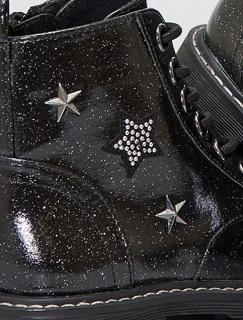 Stoere, gelakte enkellaarzen met pailletten