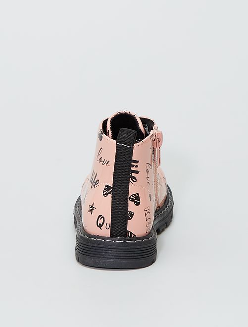 Stoere, roze enkellaarzen met print