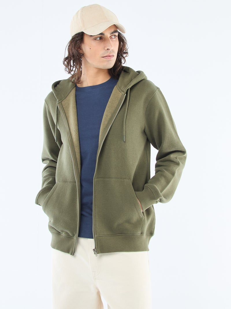 Sweatshirt van fleece met rits en capuchon - Kaki