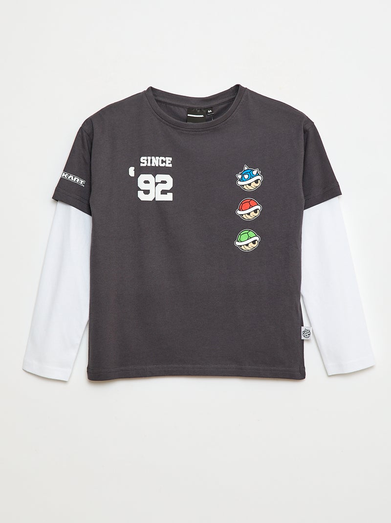 T-shirt met dubbele mouwen 'Mario' van katoen - Zwart