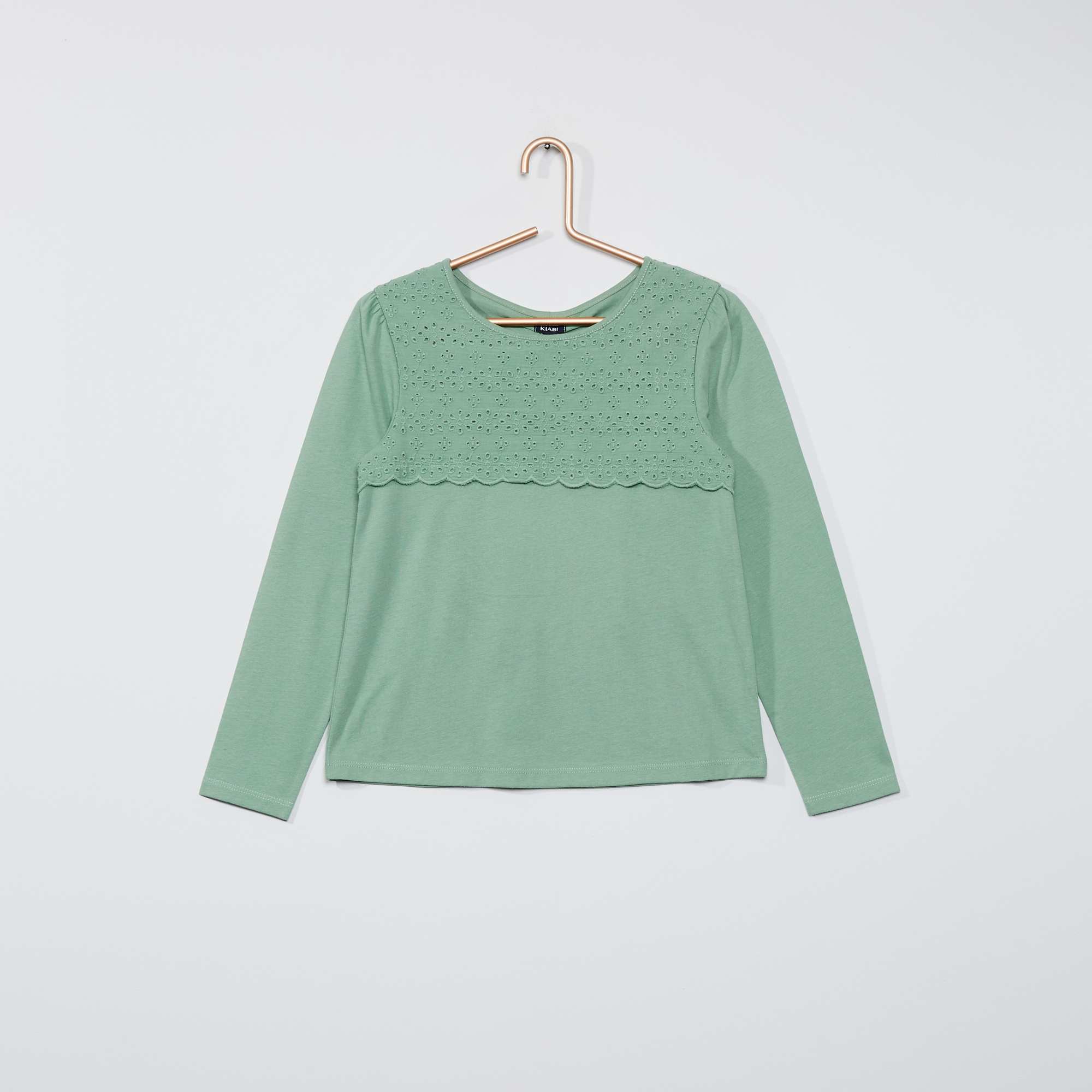 T-shirt met Engels borduurwerk                                                                                                                 grijs groen