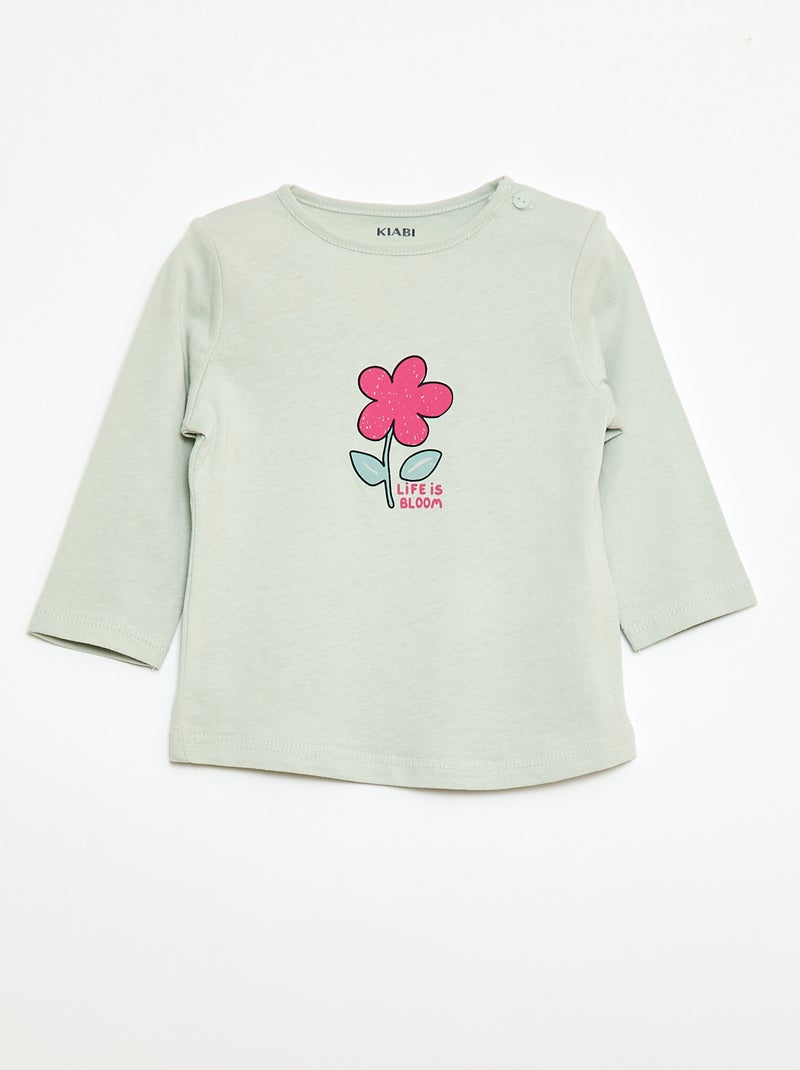 T-shirt met lange mouw en print - Groen