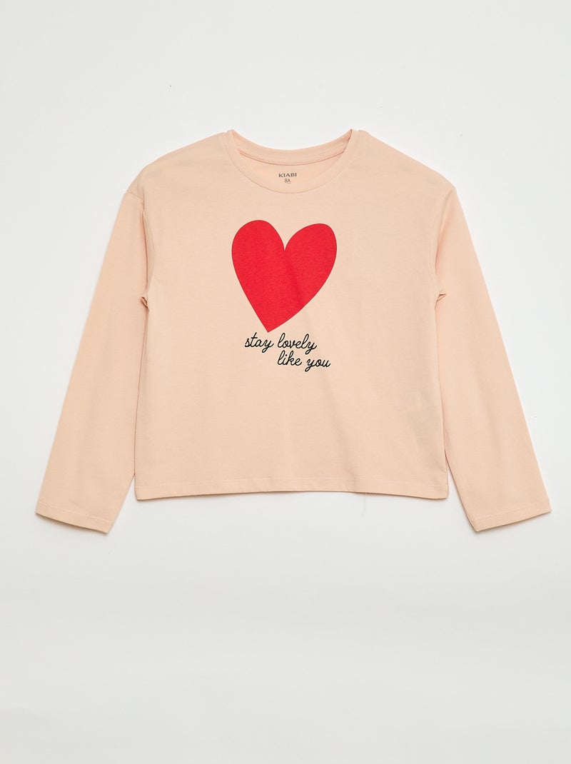 T-shirt met lange mouwen en print - Rose