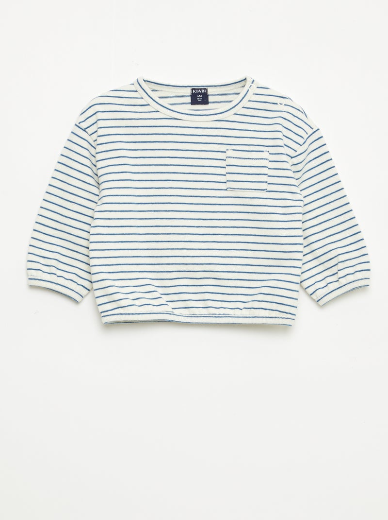 T-shirt met lange mouwen en streepjesmotief - Wit