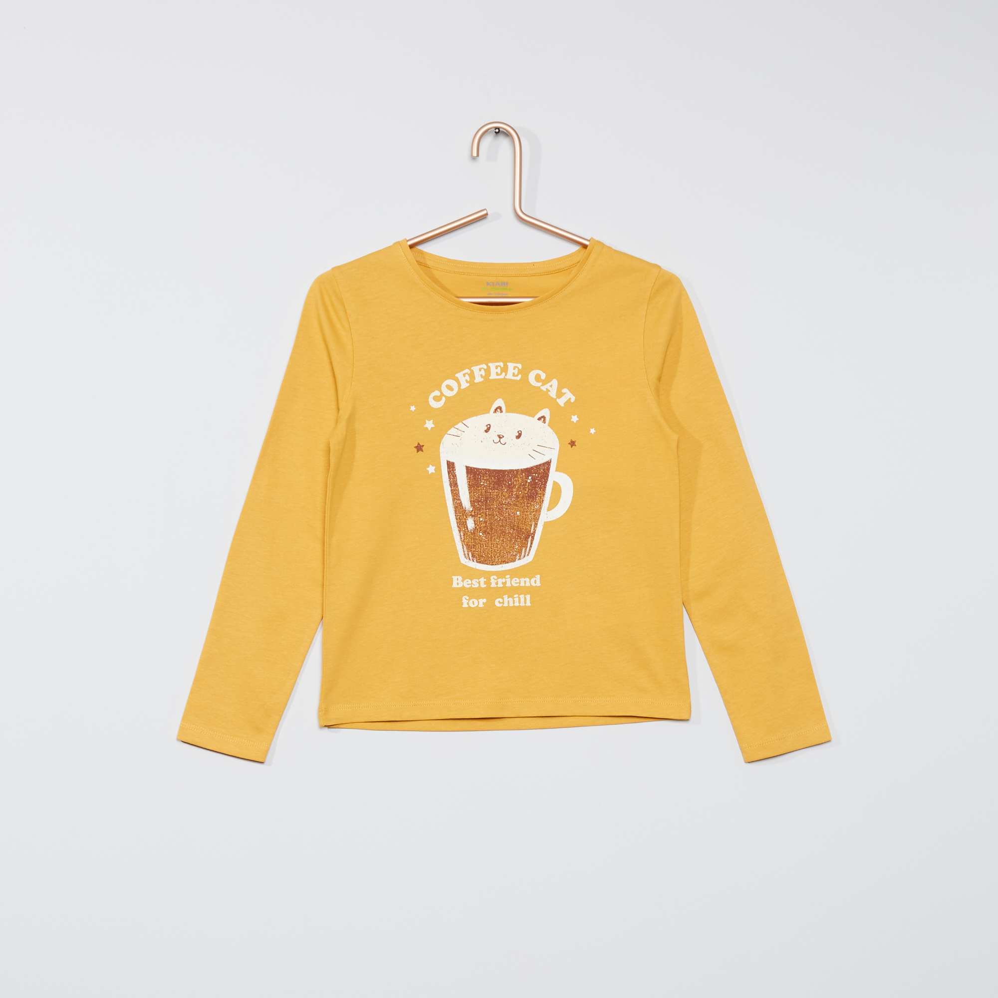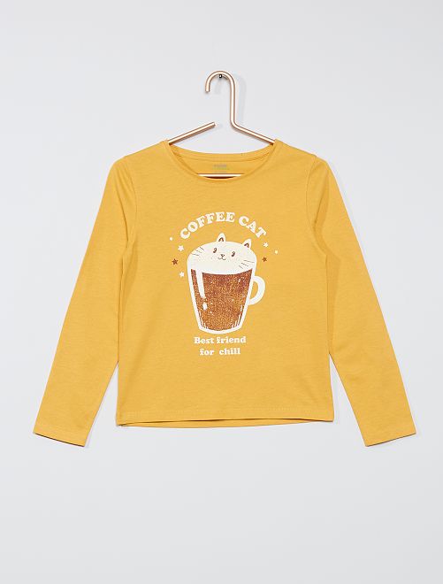 T-shirt met print 'Ecodesign'                                                                 GEEL