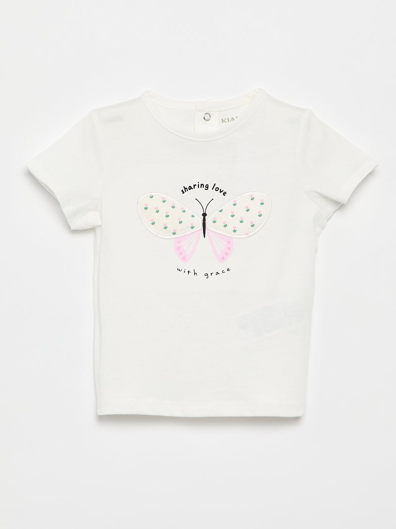 T-shirt met print en borduursel en korte mouwen - Wit
