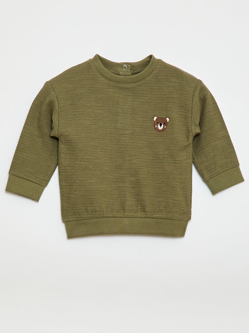 T-shirt van dikke stof met geborduurd diertje - Kaki