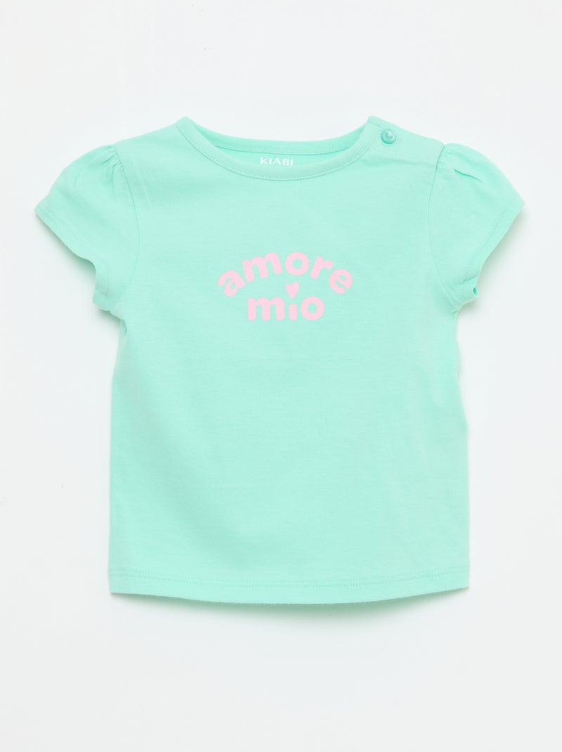T-shirt van jerseytricot met korte mouwen - Blauw