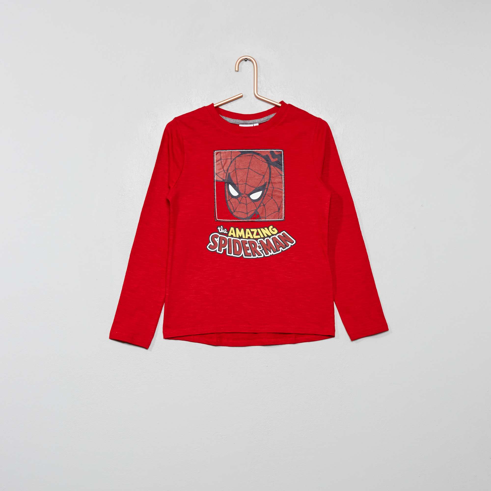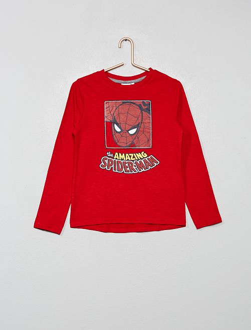 Van gevlamd katoen en met een geborduurde Spider-Man patch op de voorkant. Wat een origineel T-shirt!