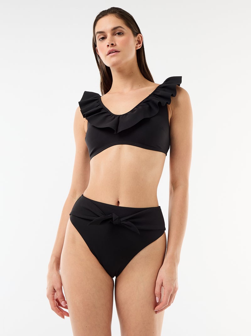 Tanga zwembroek met hoge taille van soepele microvezel - Zwart