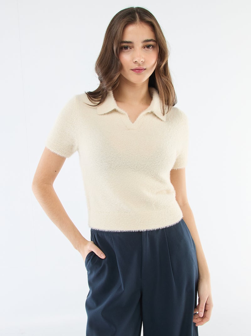 Een schattige trui van superzacht, harig breisel die je vast graag zult dragen.
