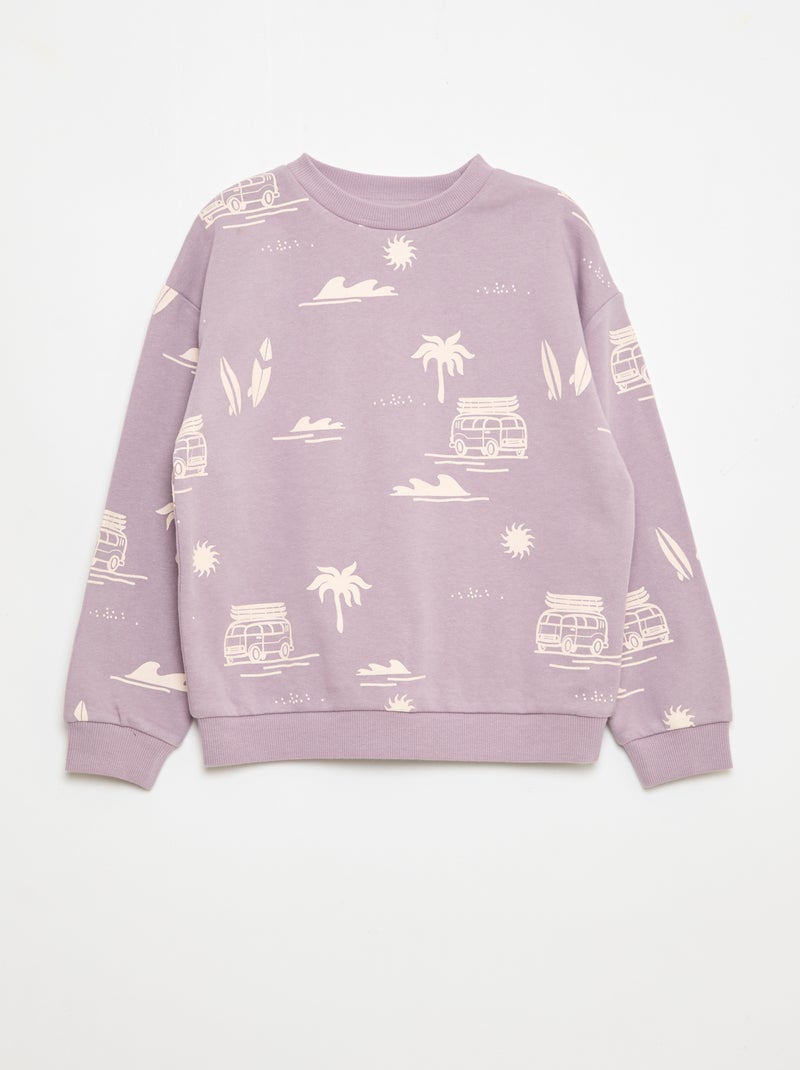 Trui met ronde hals en print van katoen - Paars