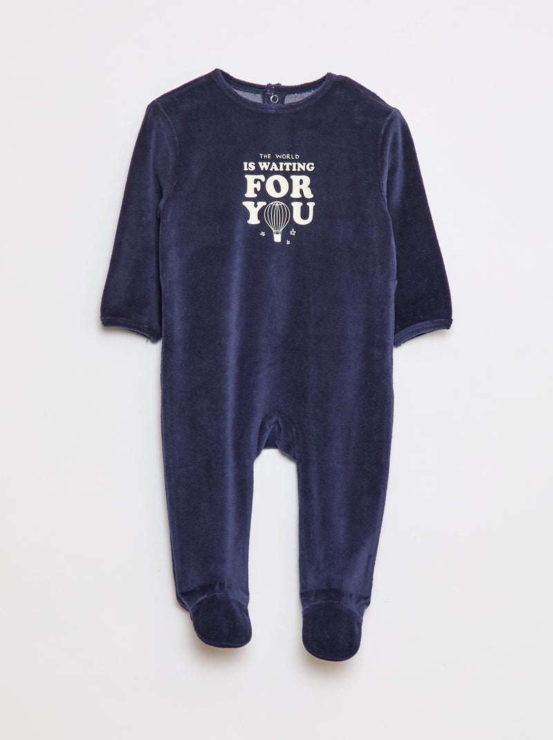 Velours pyjama met voetjes en animatie vooraan - Blauw