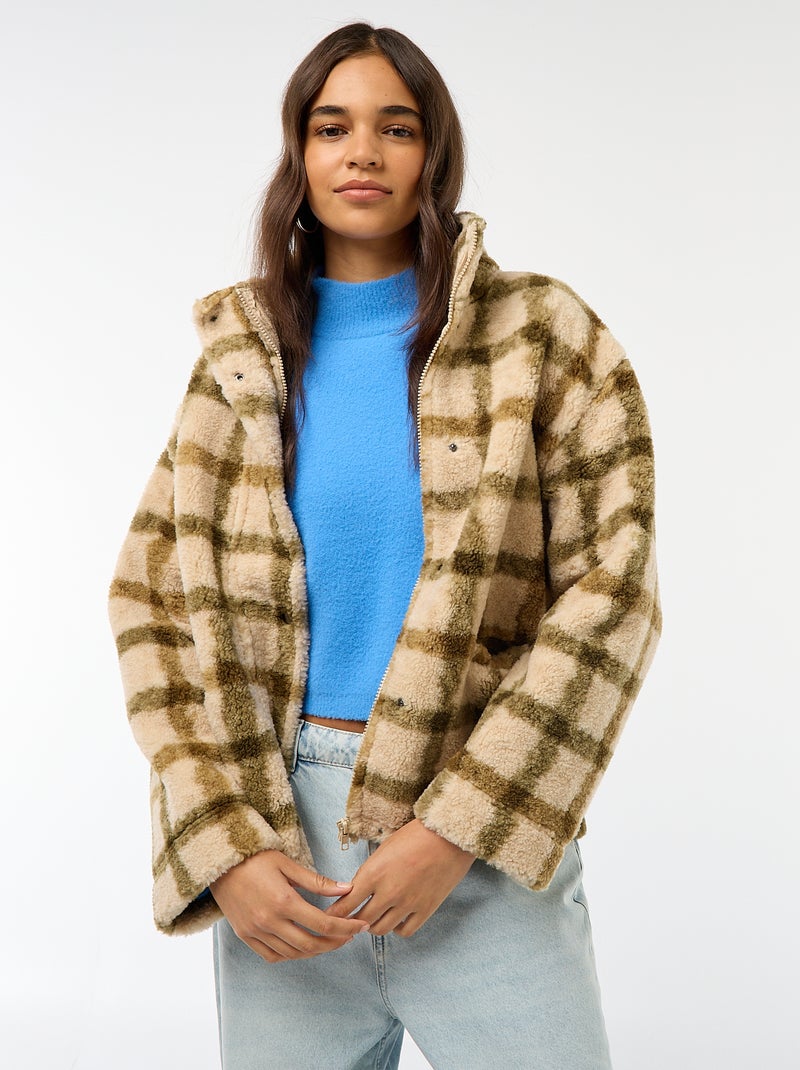 Vest met opstaande kraag en schapenvachteffect - Wit