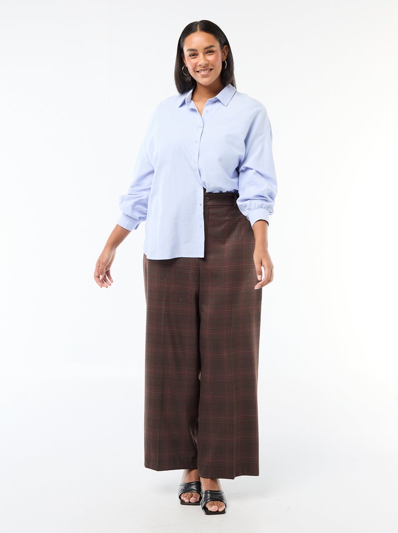Wijde broek met ruitjes - Bruin
