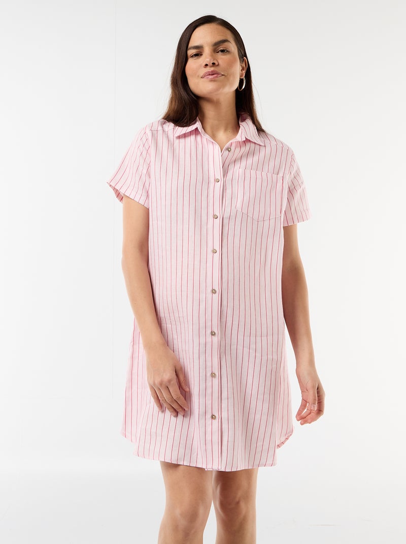 Een zwangerschapsjurk van 100% linnen, zeer aangenaam om te dragen in de zomer.