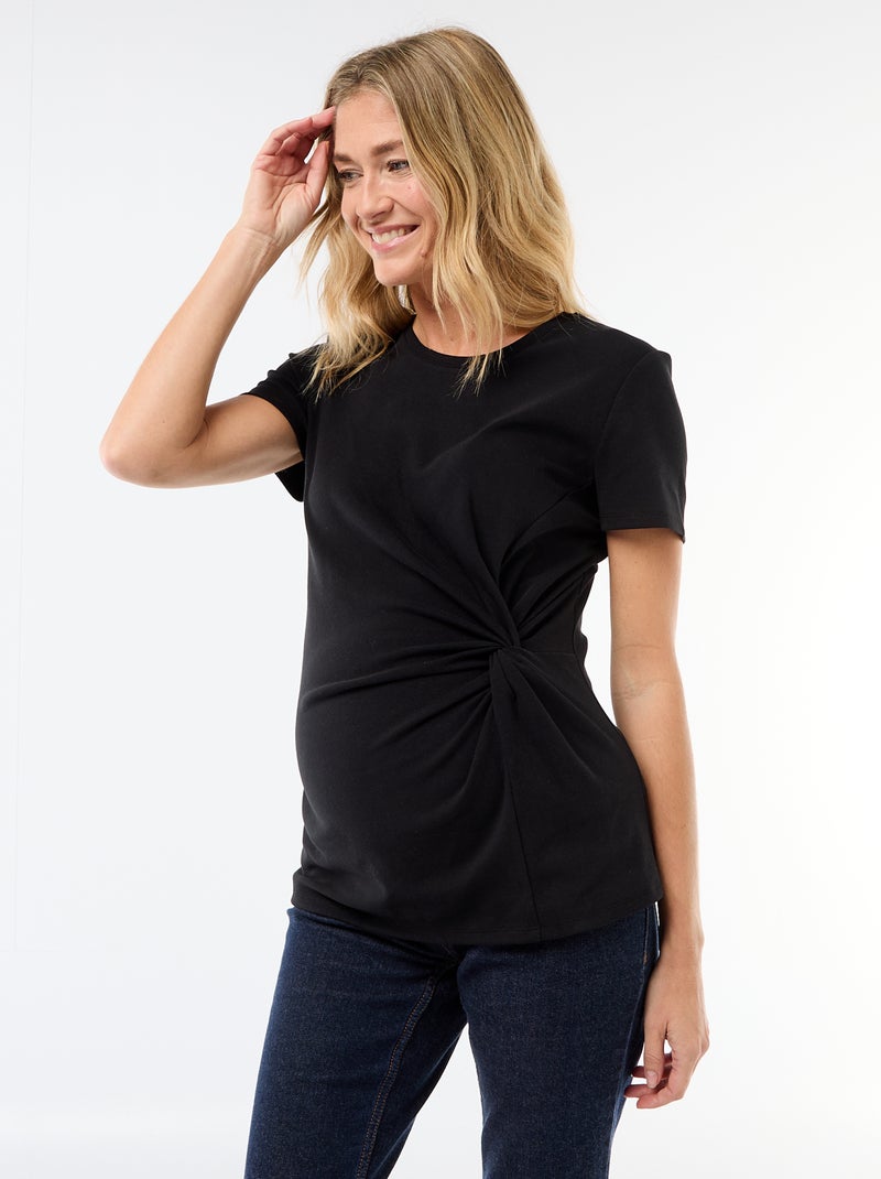 Zwangerschapsshirt met gedrapeerde ronde hals - Zwart